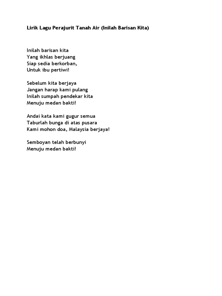 Lirik Lagu Inilah Barisan Kita Pdf