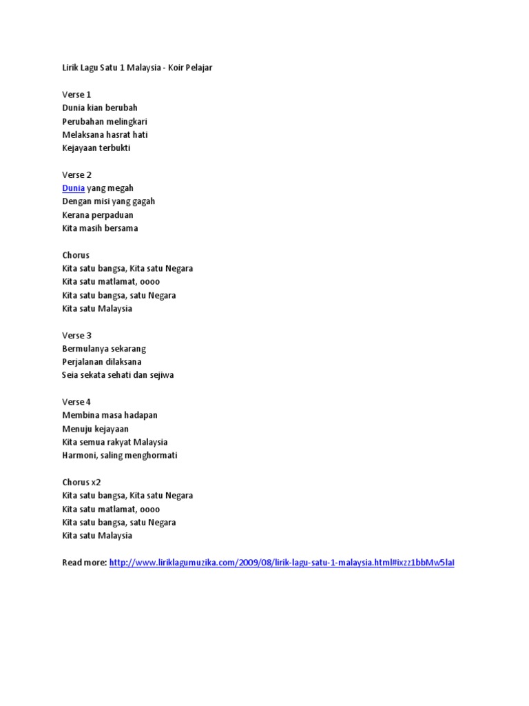 Lirik Lagu 1 Malaysia